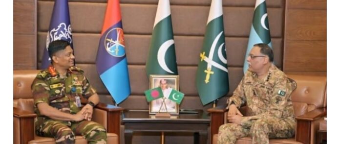 ঢাকা, ২৪ আগস্ট ২০২৫: পাকিস্তানের রাওয়ালপিন্ডিতে বাংলাদেশ সেনাবাহিনীর কোয়ার্টার মাস্টার জেনারেল লেফটেন্যান্ট জেনারেল মো. ফাইজুর রহমান এবং পাকিস্তান সেনাবাহিনীর চেয়ারম্যান জয়েন্ট চিফস অব স্টাফ কমিটি (CJCSC) জেনারেল সাহীর শামশাদ মির্জার মধ্যে এক বৈঠক অনুষ্ঠিত হয়েছে। বৈঠকে আঞ্চলিক নিরাপত্তা পরিস্থিতি, বিদ্যমান প্রতিরক্ষা সহযোগিতা এবং ভবিষ্যতের সম্ভাব্য উদ্যোগ নিয়ে আলোচনা হয়।